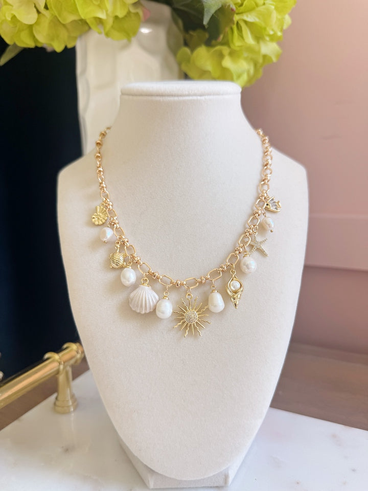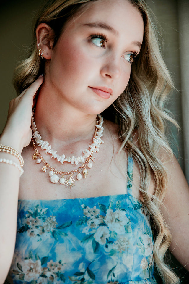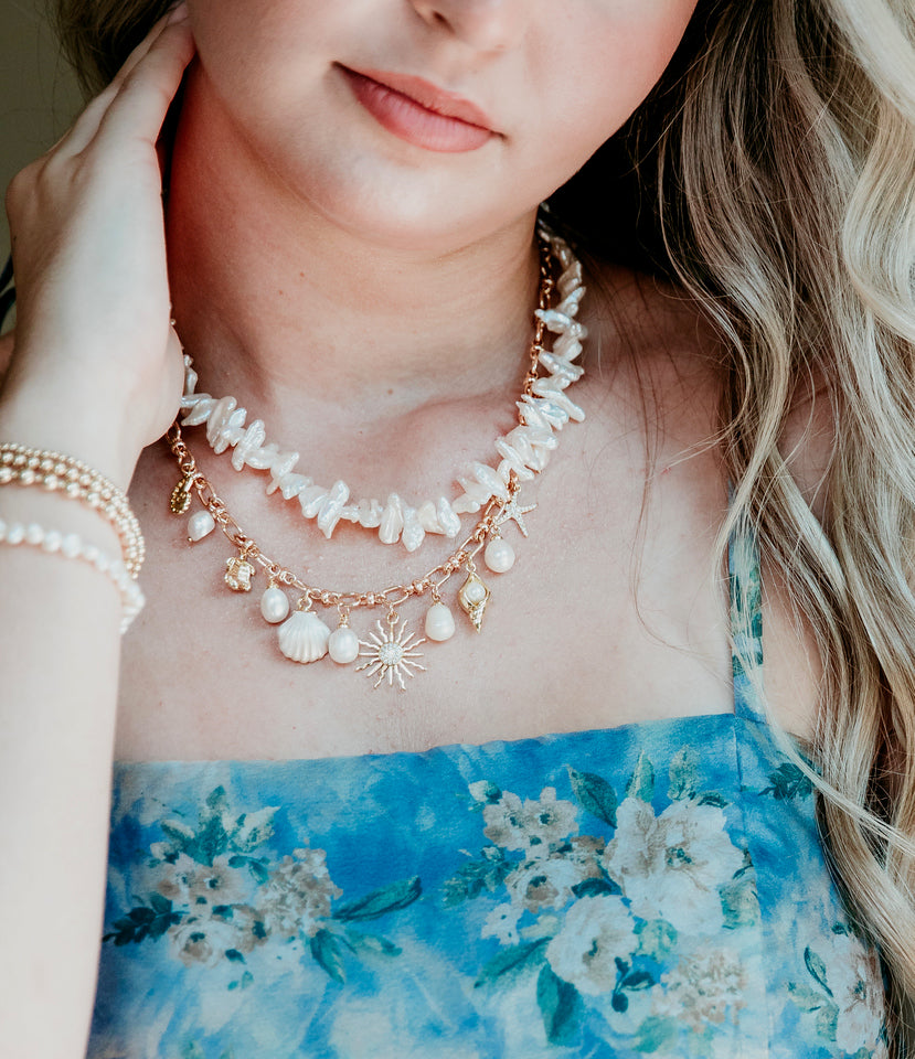 "If you're on the hunt for a statement piece that brings all the drama (in the best way), Alessandra is your girl. This bold, eye-catching necklace is crafted with high-quality, water-friendly materials — so you can make a splash at the beach or pool without worrying about tarnishing. Adorned with vibrant, handpicked charms exactly as pictured, Alessandra is made to turn heads and spark conversations.
