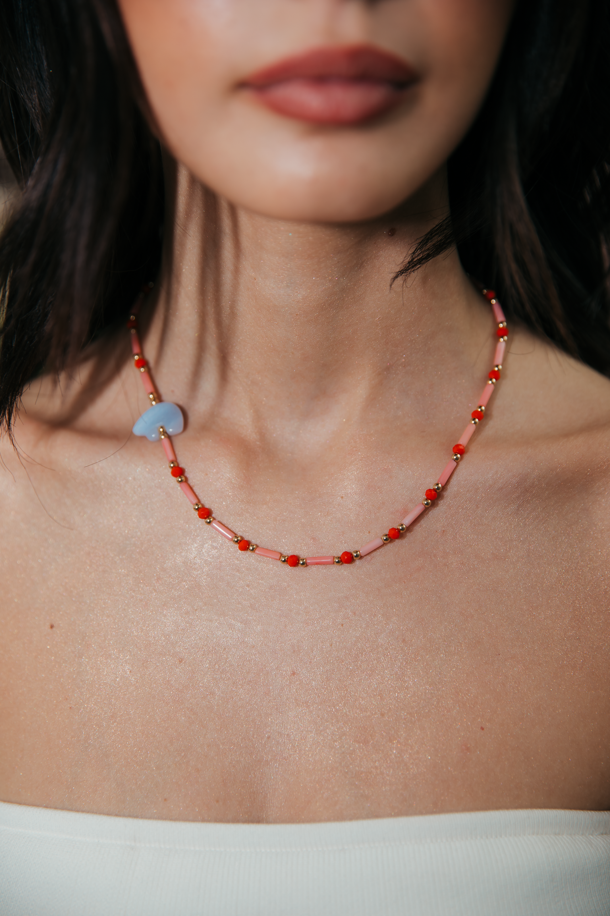 This is piece was curated for our mountain loving girls. Blue Agate bear with gold filled hardware. Great for layering or wearing on its own. Length 16.5inch
