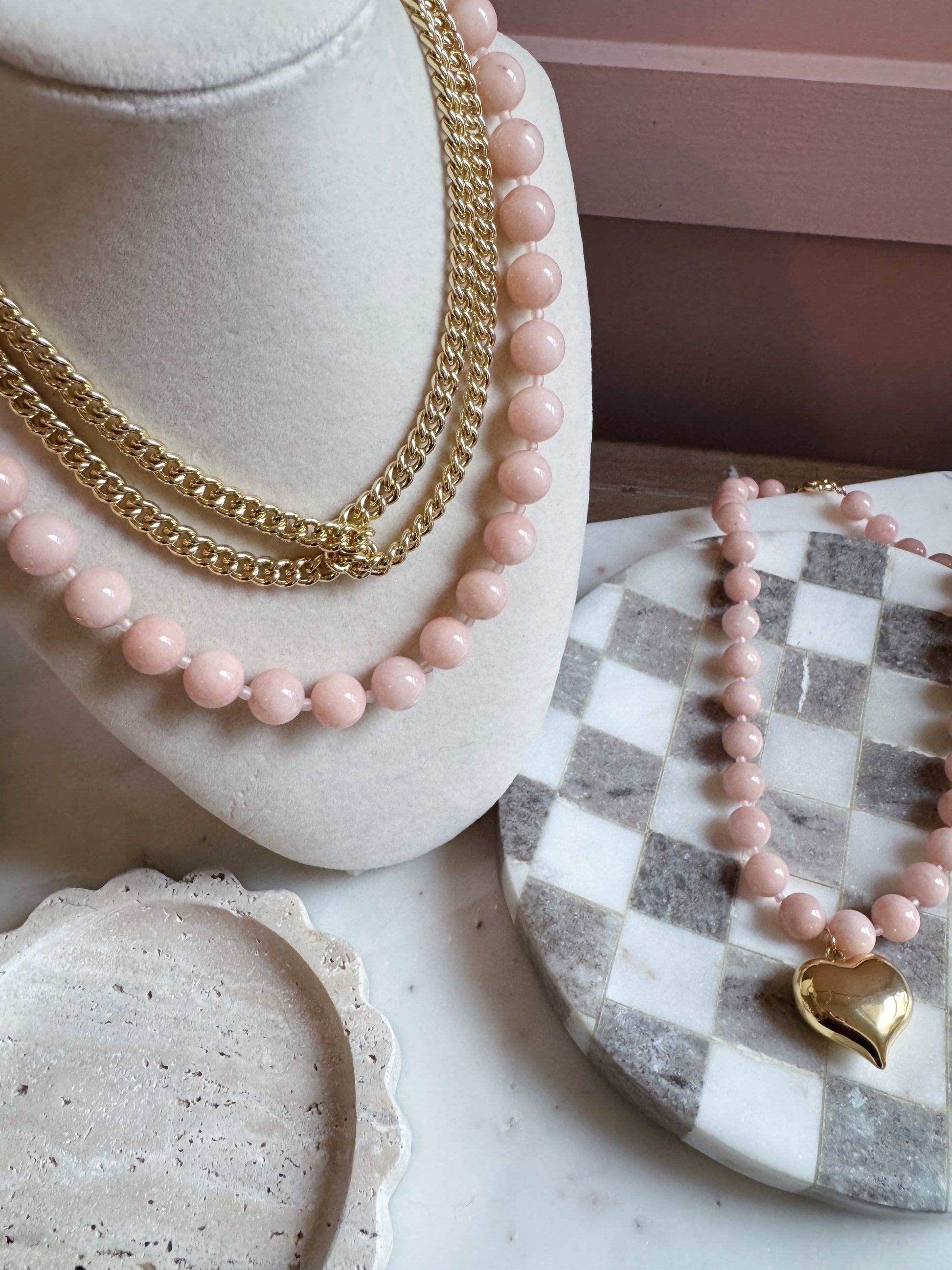 12mm pink opal beads with sailor clasp closure - 17.5inches long