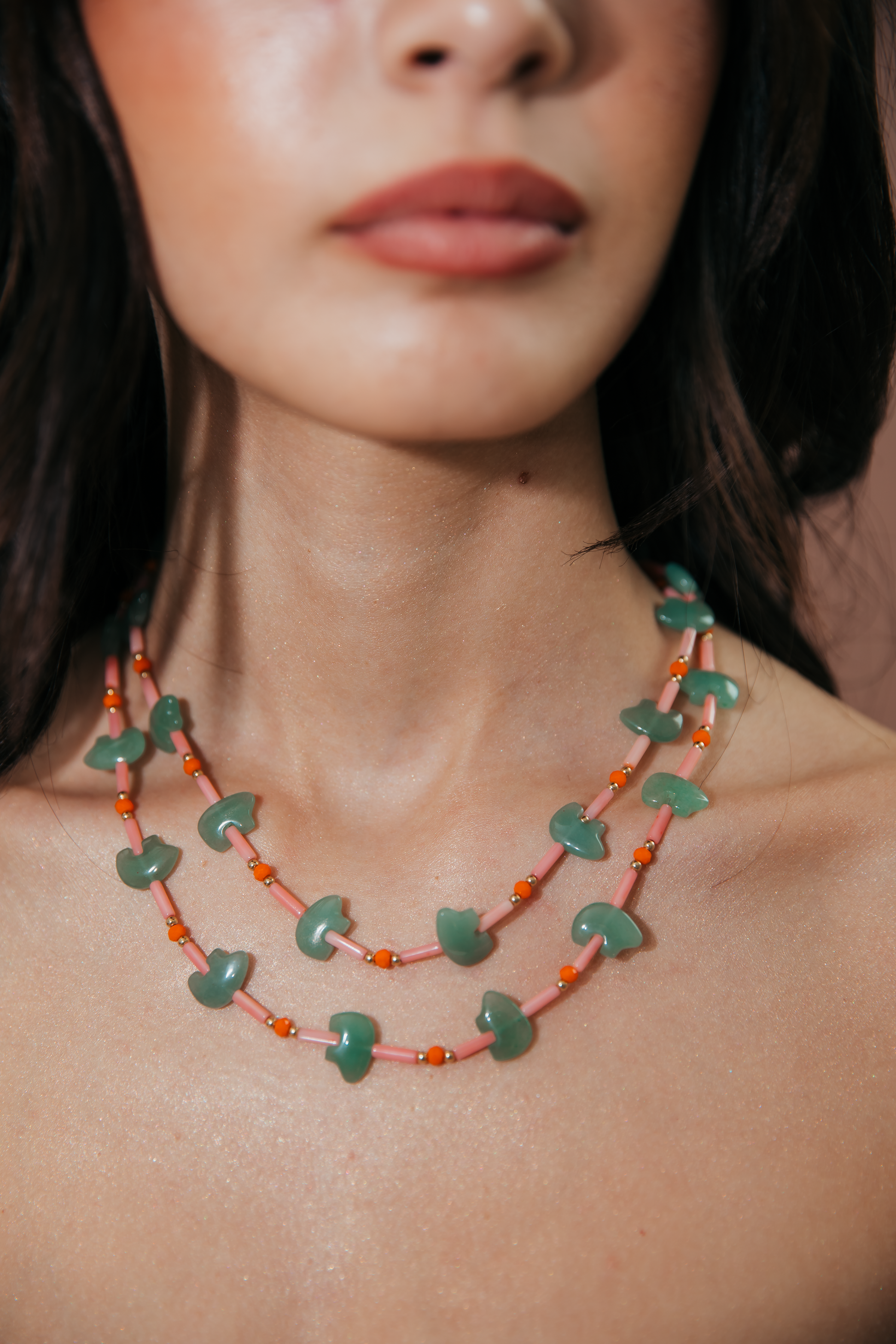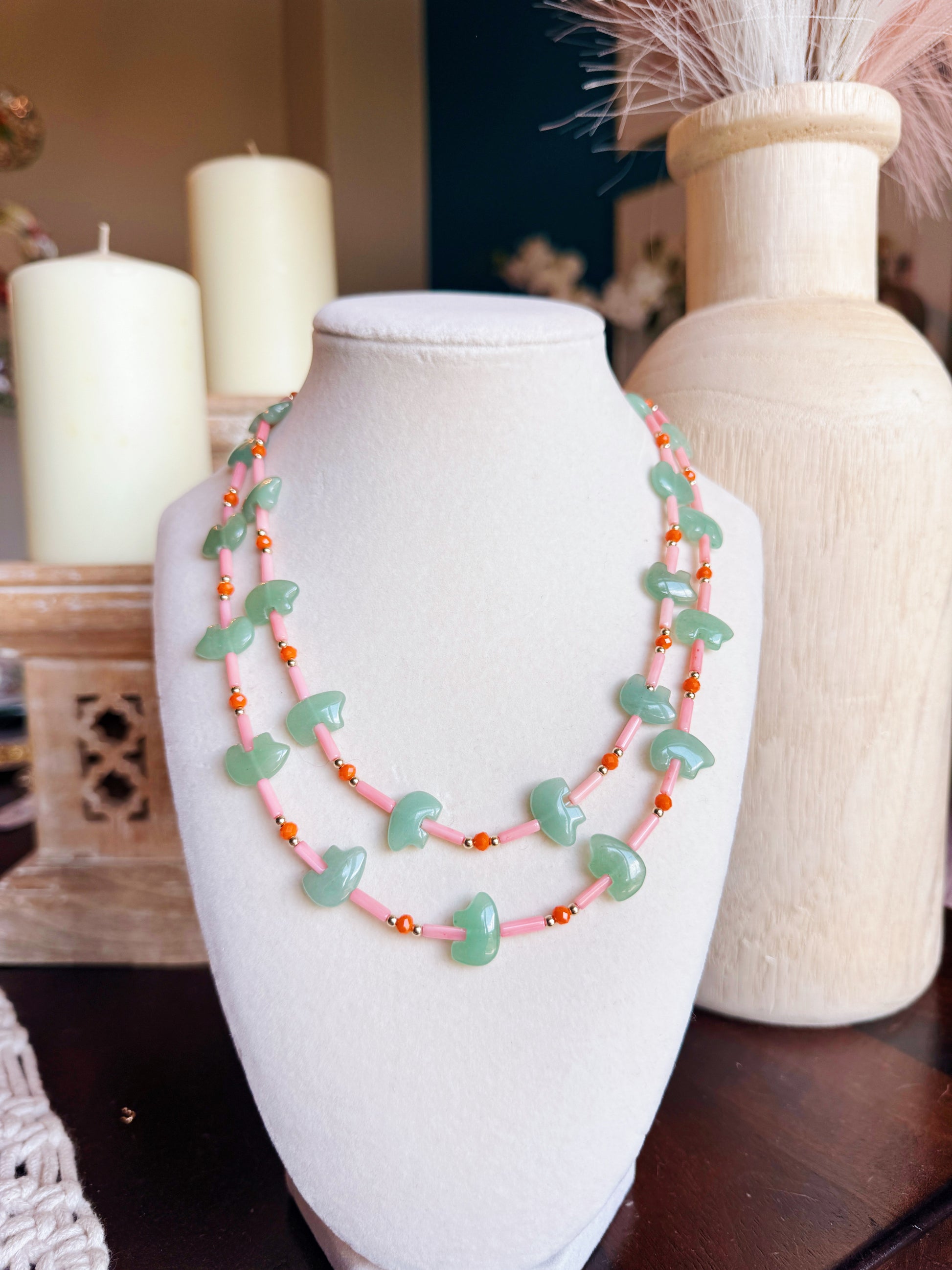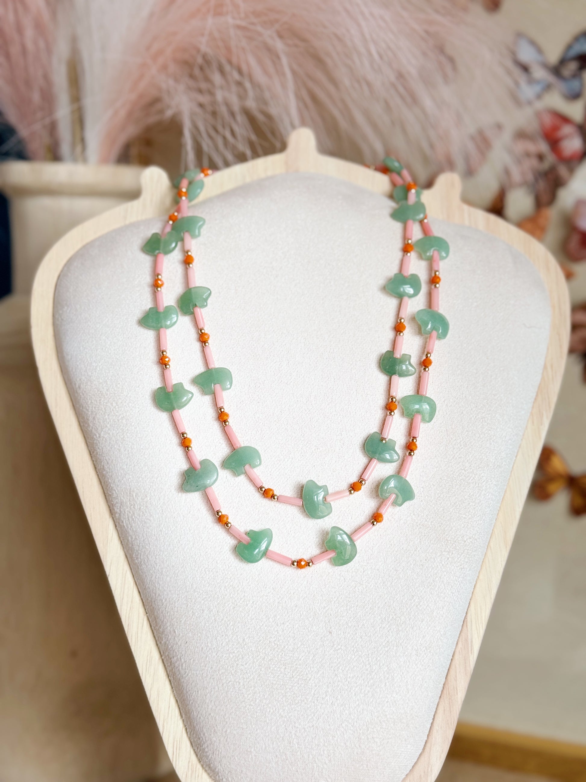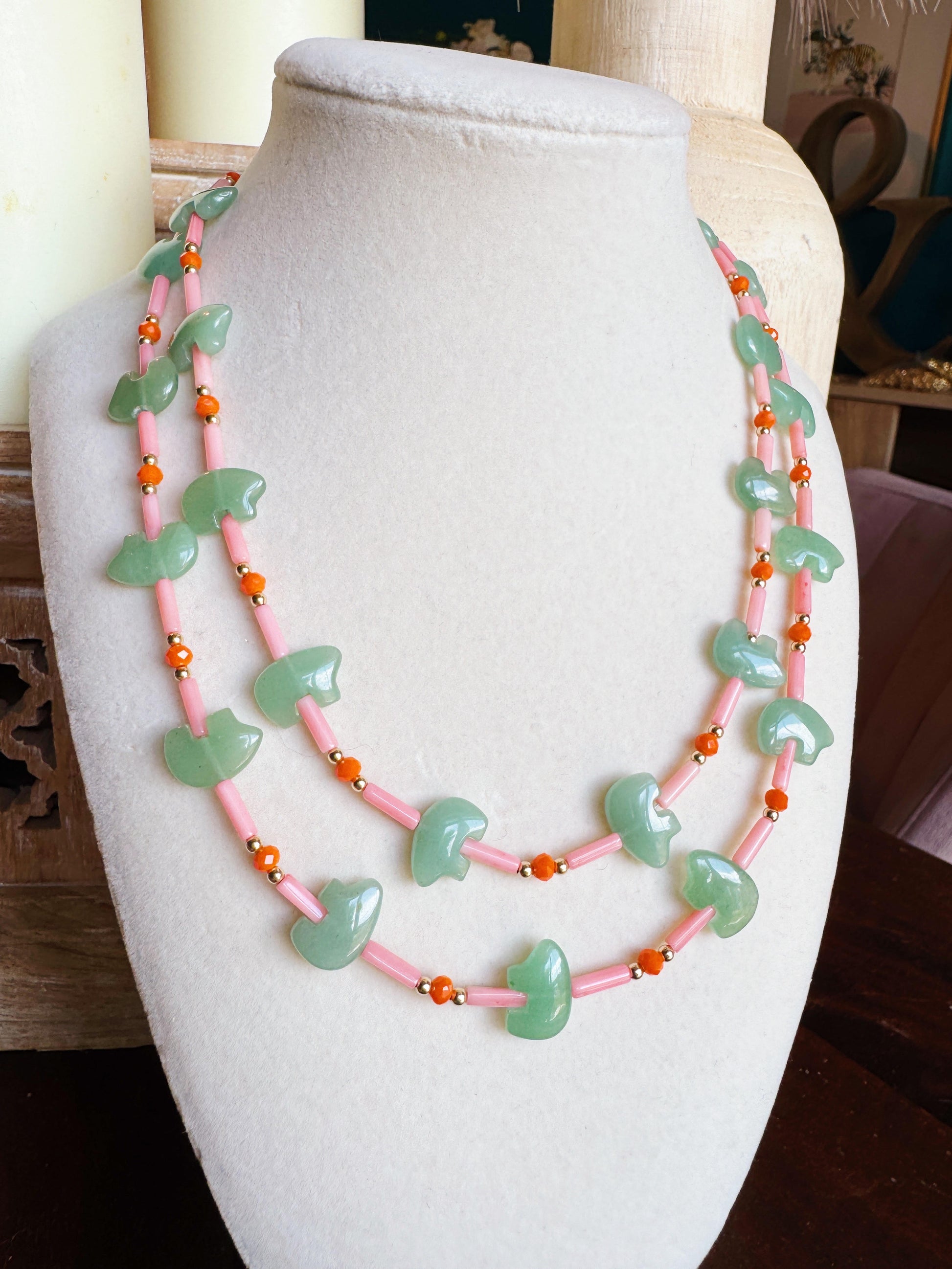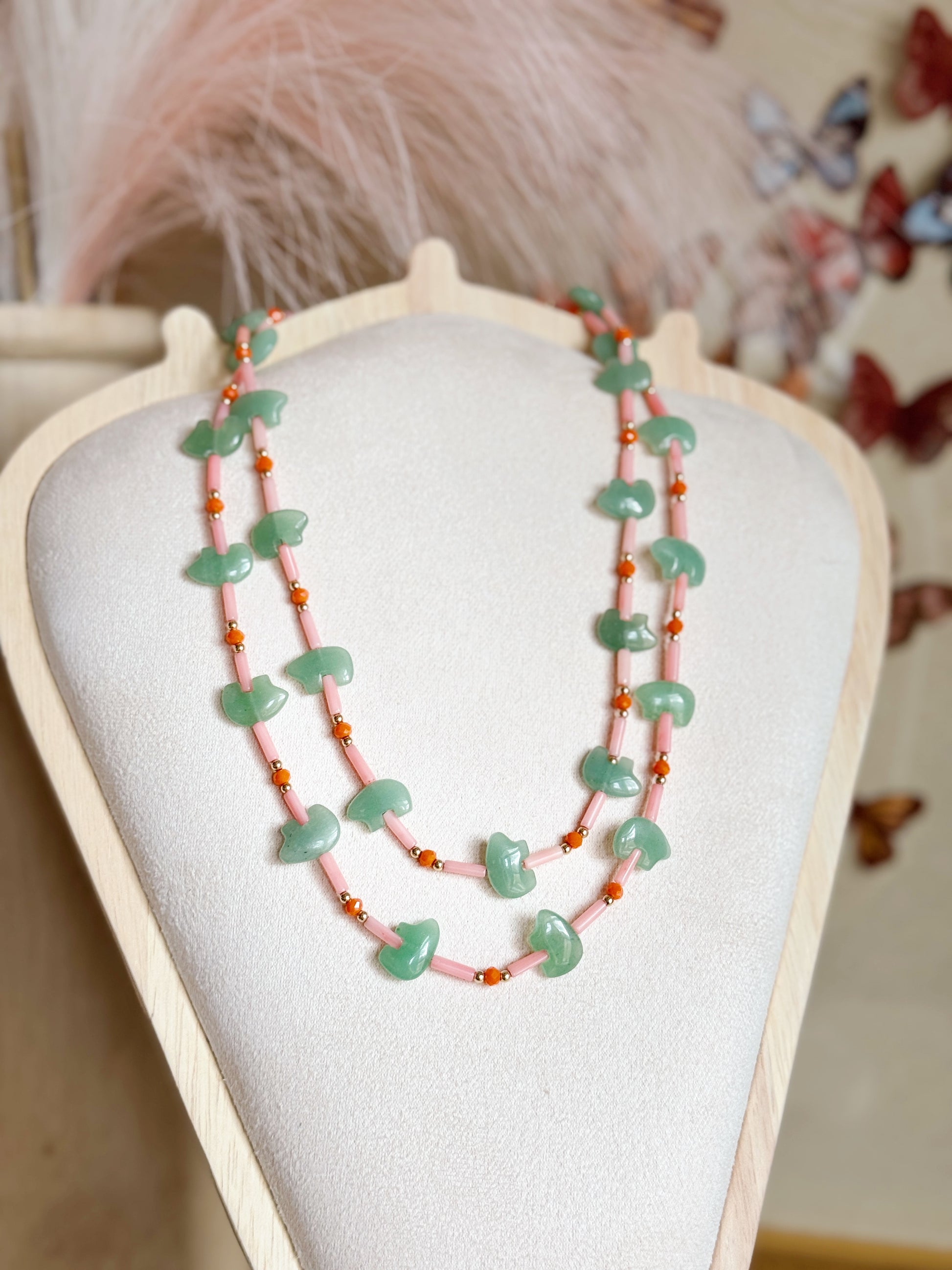 Absolute showstopper - two tiered with pink opal beads and jade tiny bears.