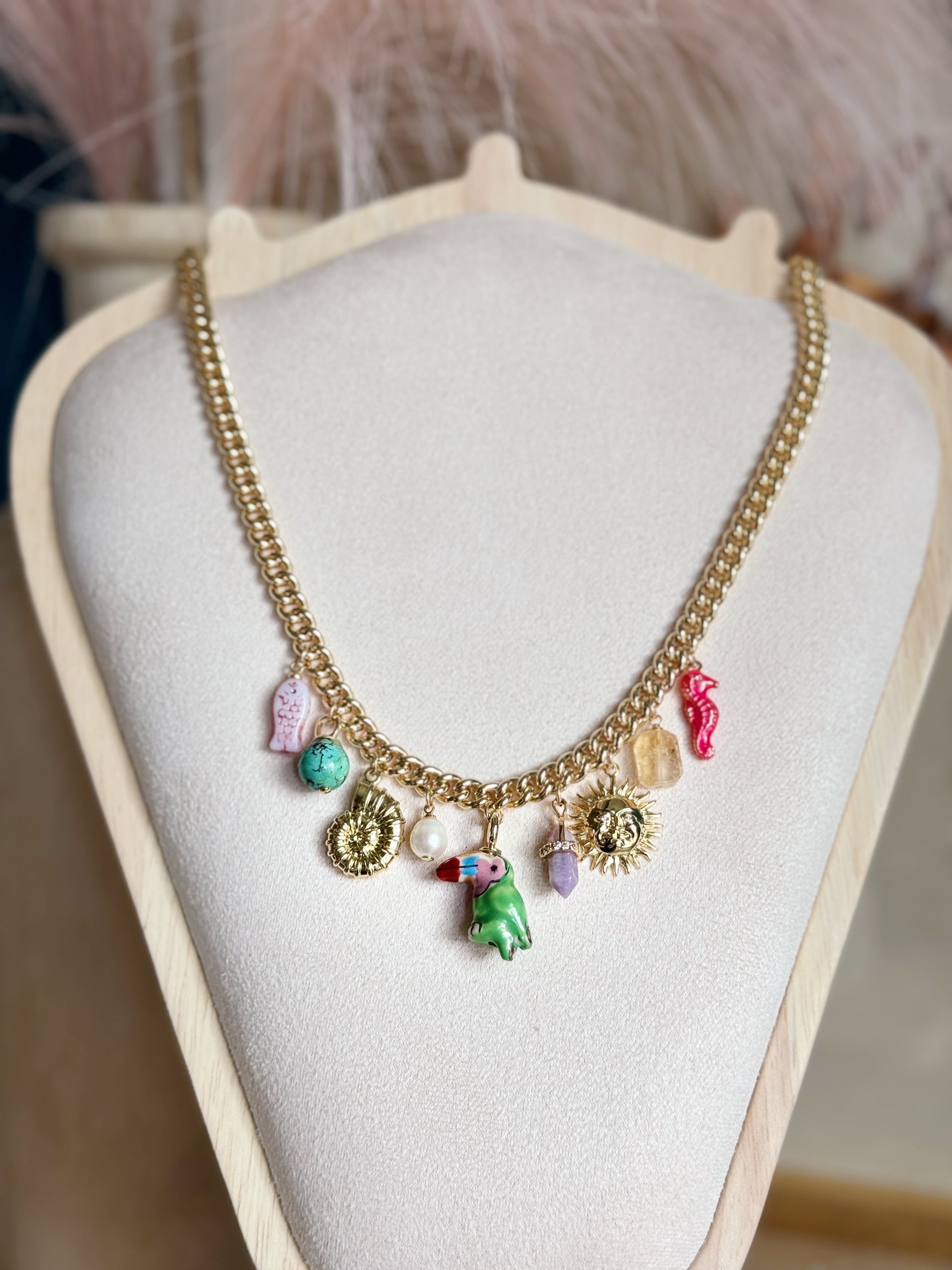 19inch 24k gold filled curb chain with 9 unique charms Absolutely perfect for your summer vacation.