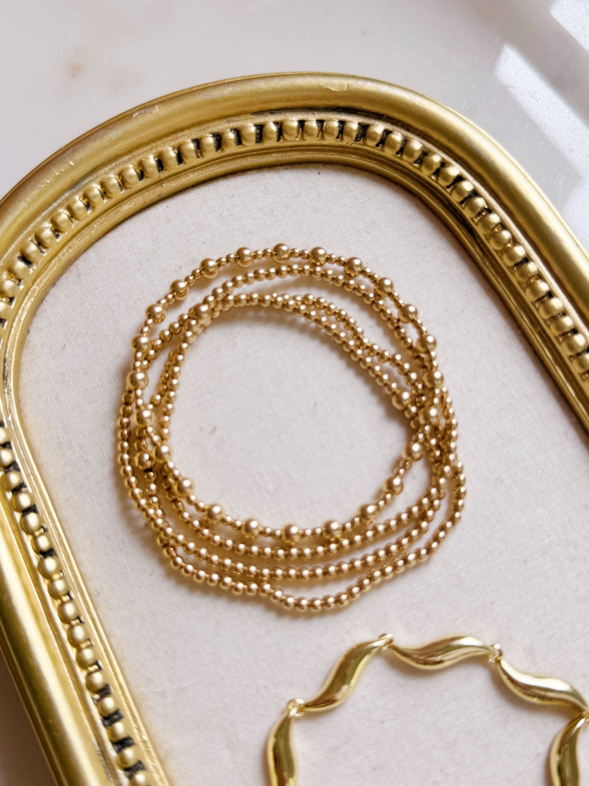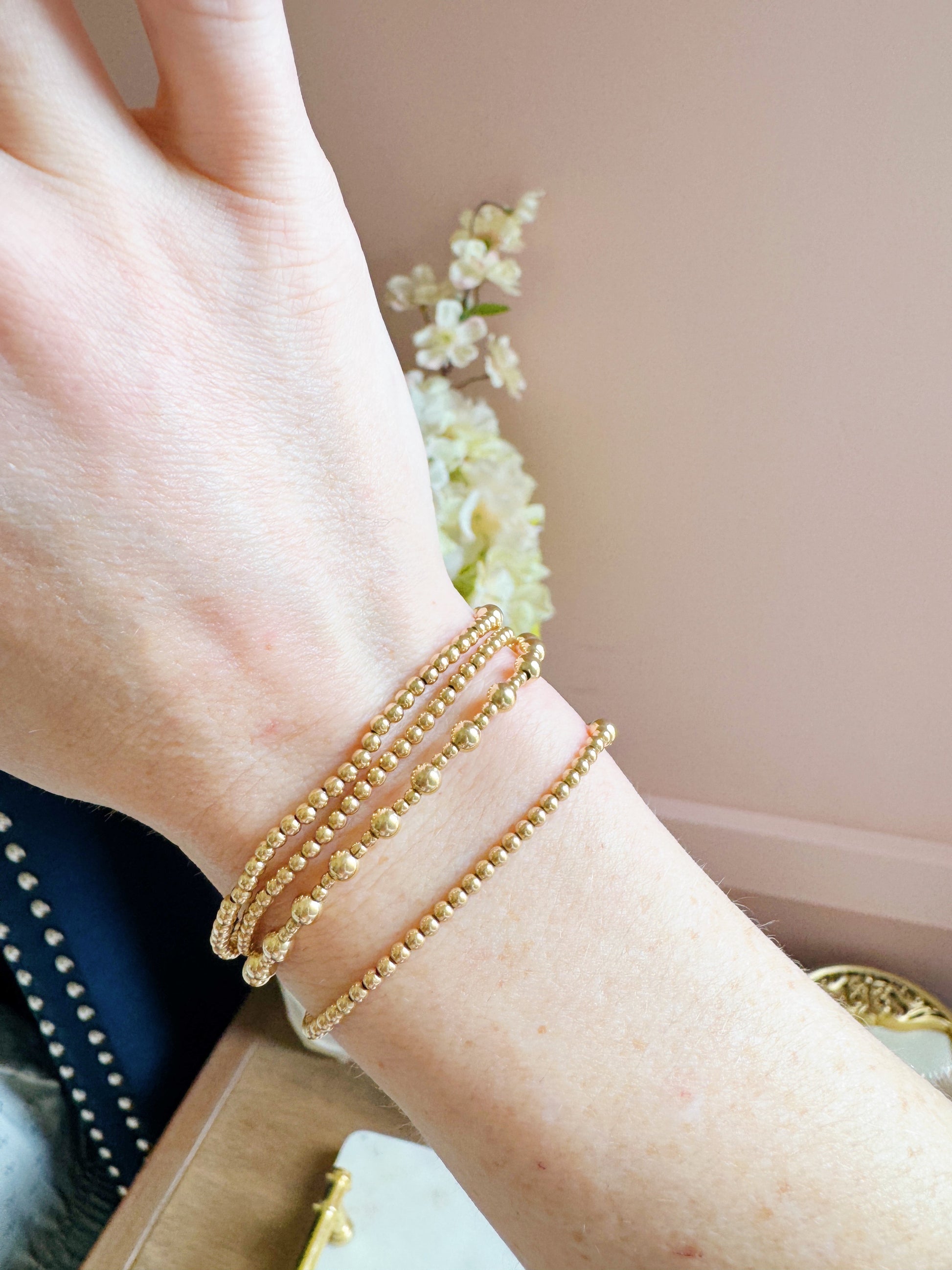 Set of four gold filled bracelets - 2mm (3 total) and Jozie (mixed beads)